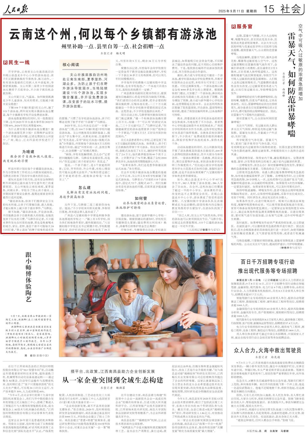 文山壯族苗族自治州地處云南東南部,夏季濕熱、河湖眾多。為防止孩子們在野外游泳導(dǎo)致溺水,當(dāng)?shù)仃懤m(xù)建設(shè)115個游泳池,實現(xiàn)鄉(xiāng)鎮(zhèn)全覆蓋,并開設(shè)免費(fèi)游泳課,改變孩子的玩水習(xí)慣,提升游泳技能。