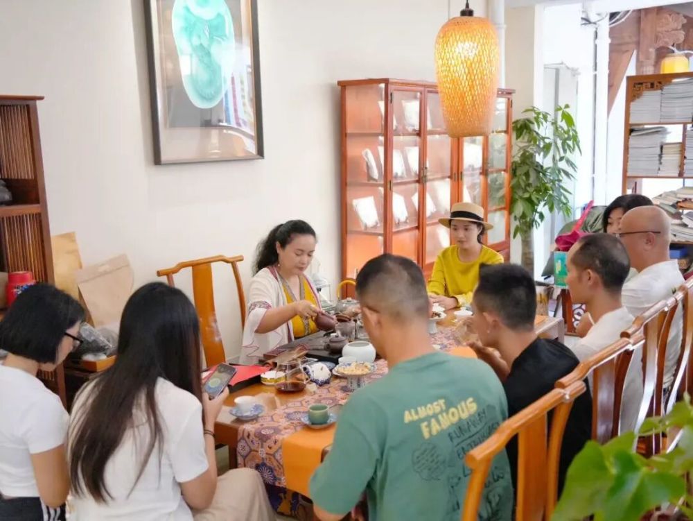 “不歇茶室”的持續(xù)運營,也讓普洱茶文化的傳播更加“接地氣”。以往,外地游客了解普洱茶,多是通過參觀茶廠、購買茶葉等方式,缺乏深度體驗。而現(xiàn)在,游客抵達(dá)思茅區(qū)后,無需特意規(guī)劃,每天都能通過流水茶室走進(jìn)本地茶空間,與主理人面對面交流,聽他們講述普洱茶葉的采摘、制作過程,感受“世界茶源”的深厚底蘊。