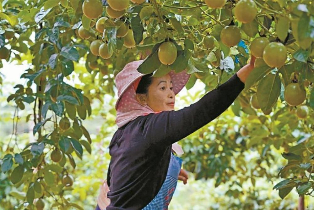 喜摘百香果。