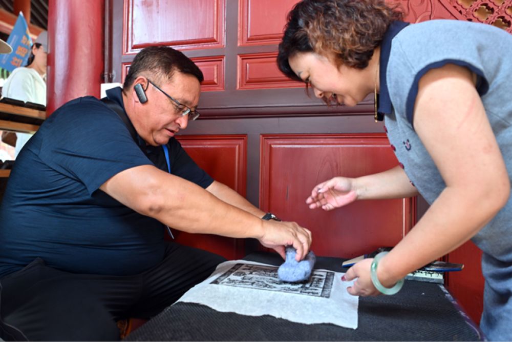 古老的院落里彌漫著墨香與木頭的芬芳。在當(dāng)?shù)厥止に嚾说闹笇?dǎo)下,《哈薩克斯坦實(shí)業(yè)報(bào)》總編輯謝里克·科爾茹姆巴耶夫正小心翼翼地將宣紙按壓在蘸滿(mǎn)墨水的甲馬木版上。這是一種被認(rèn)為可以承載祈愿的神秘民間版畫(huà)。