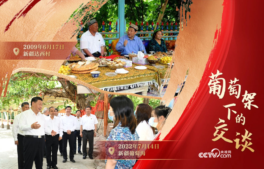 這段對話,發(fā)生于2022年7月14日。那天下午,習(xí)近平總書記來到新疆吐魯番的葡萄溝,與來自天南海北的游客親切交談。