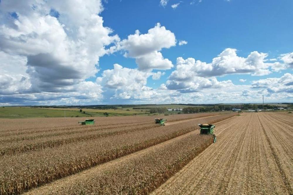 △2025年9月10日,在北大荒集團(tuán)黑龍江建設(shè)農(nóng)場(chǎng)有限公司第三管理區(qū),大馬力機(jī)車在進(jìn)行玉米搶收作業(yè)。
