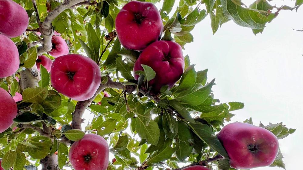現(xiàn)下,甘肅天水花牛蘋果又紅了。放眼望去,行行果樹(shù)整齊排列,紅彤彤的花牛蘋果掛滿枝頭。