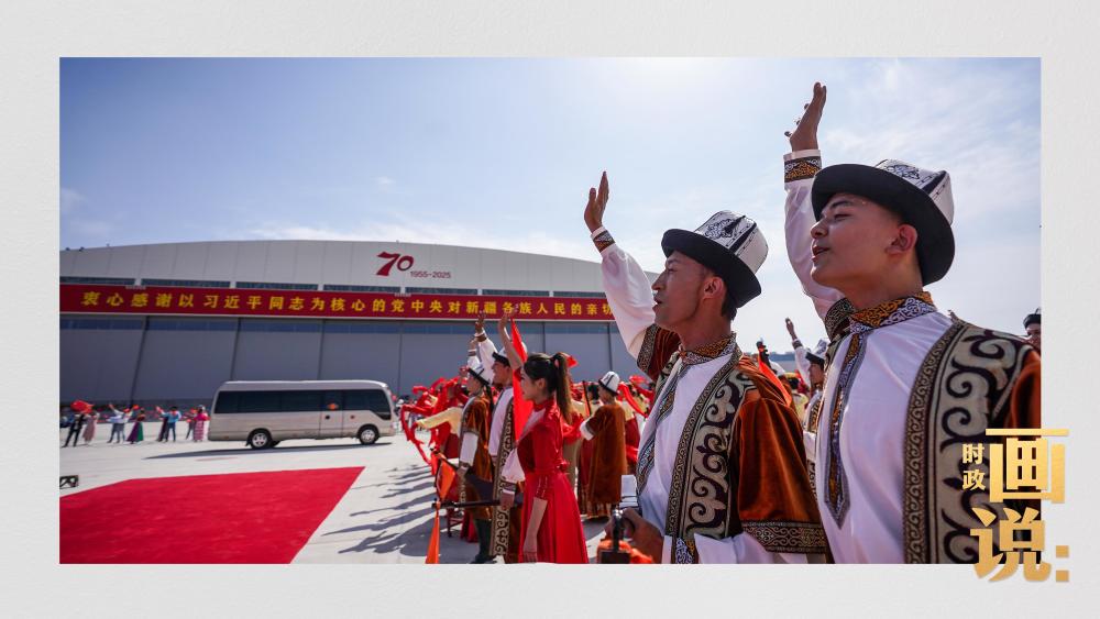 中共中央總書記、國家主席、中央軍委主席習(xí)近平率中央代表團23日下午乘專機抵達烏魯木齊,出席新疆維吾爾自治區(qū)成立70周年慶?;顒印A?xí)近平在機場受到新疆各族群眾的熱烈歡迎。