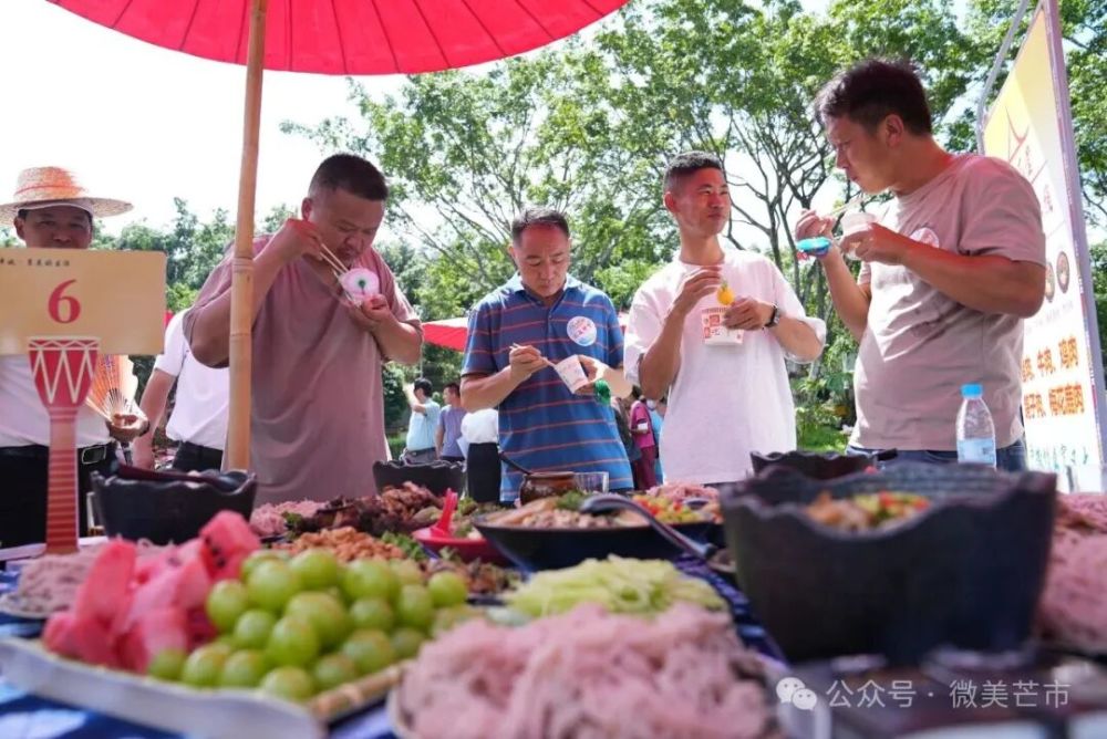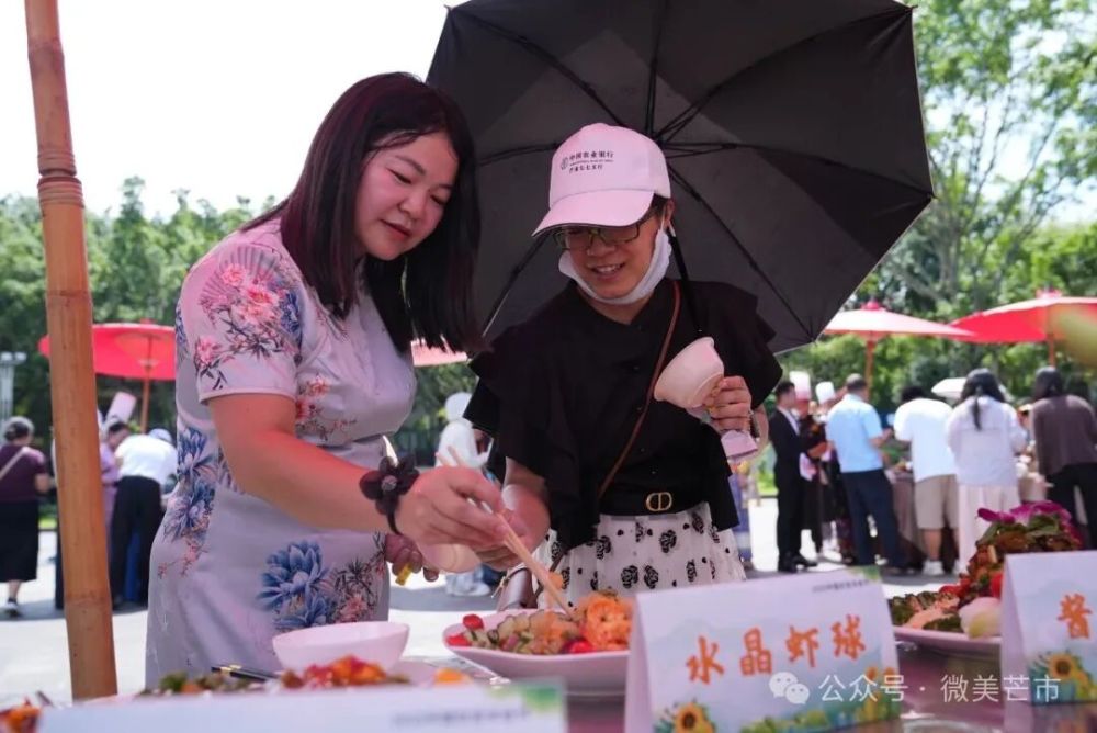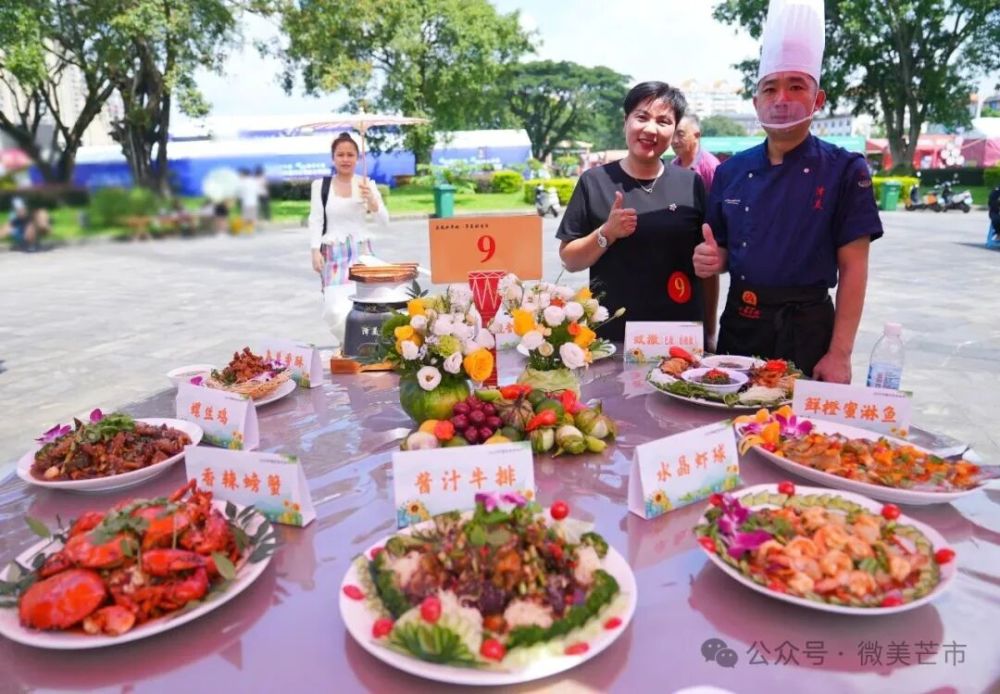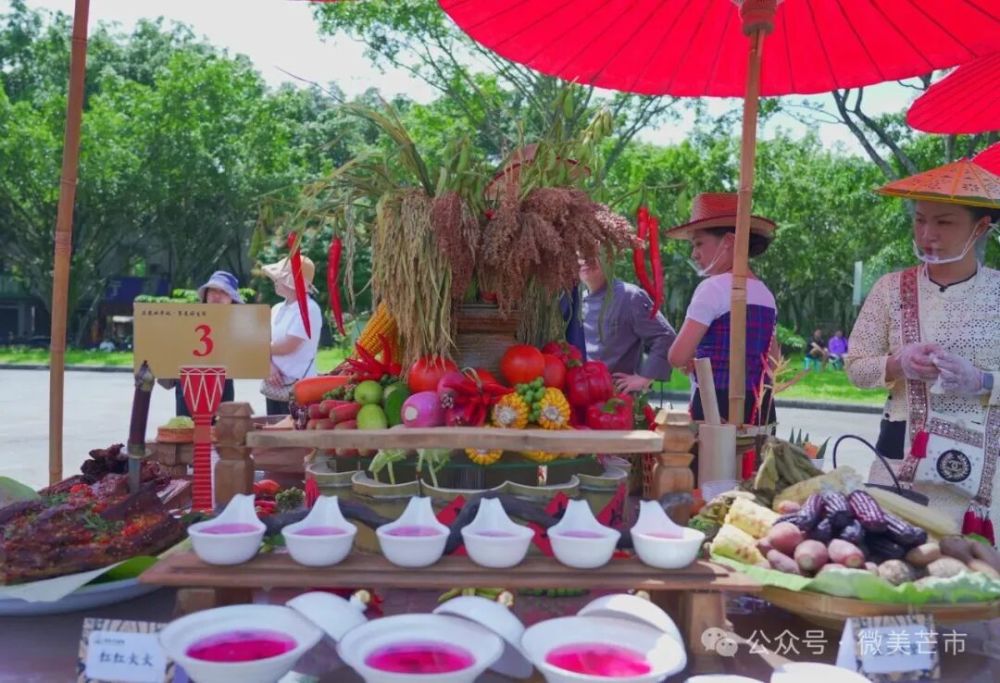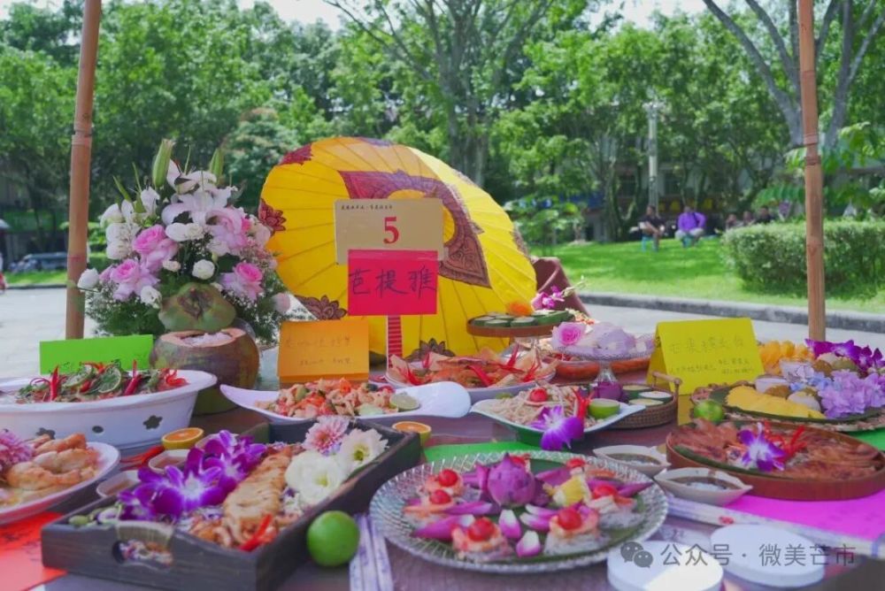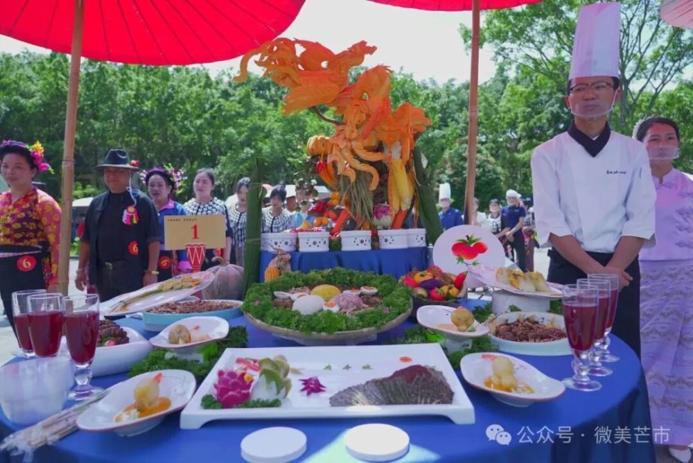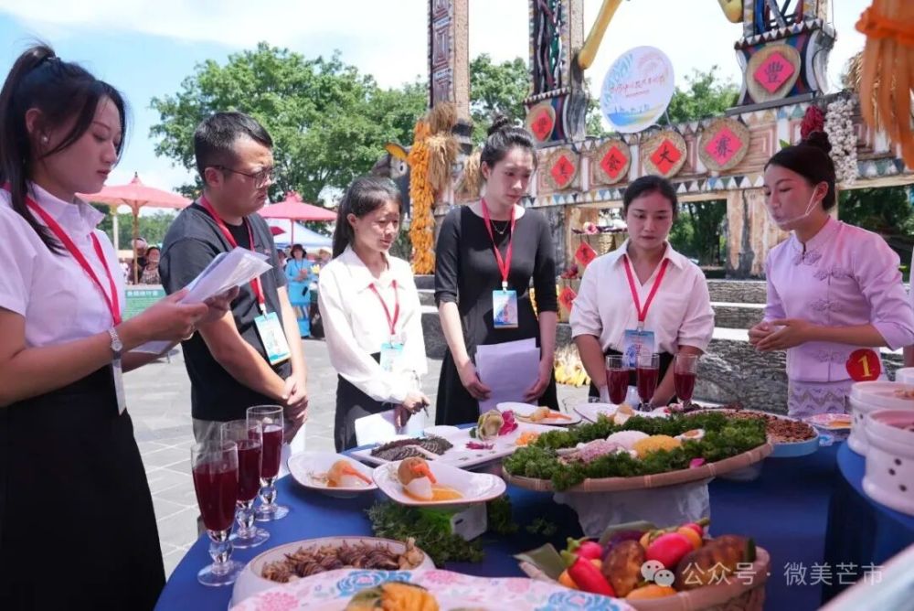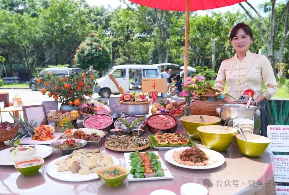 現場,來自芒市各鄉(xiāng)鎮(zhèn)(街道)、農場社區(qū)推薦的餐飲商戶、農家菜館,傣族、景頗族、德昂族等民族特色美食傳承人,民間烹飪愛好者,以及德宏職業(yè)學院、芒市職業(yè)教育中心餐飲專業(yè)的師生團隊帶著對土地的感恩、對美食的熱忱,用遮放貢米、本地畜禽、熱帶果蔬等“芒市豐收好料”一一呈現傳統(tǒng)美味,更有創(chuàng)新農家菜、豐收主題果飲與甜品登臺亮相。