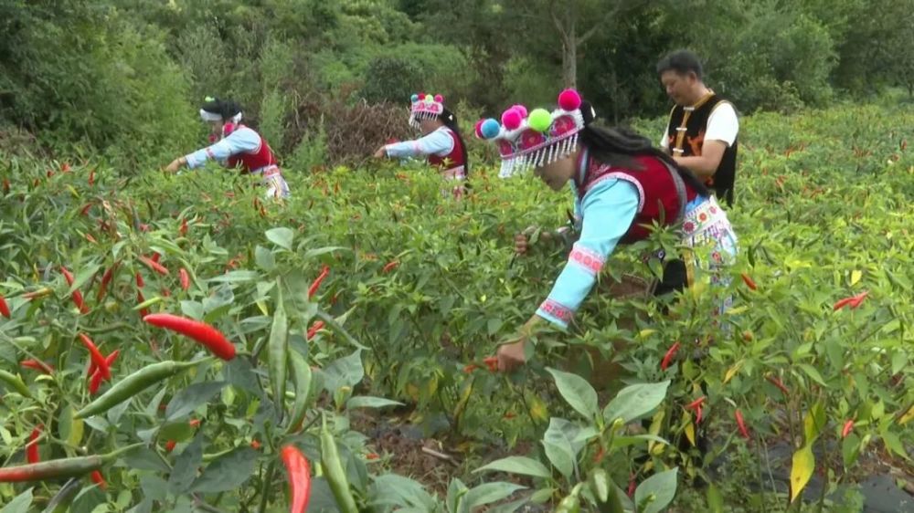 巍山縣牛街鄉(xiāng)直捷村的2000畝朝天椒喜獲豐收。通過“黨支部+合作社+基地+農(nóng)戶”模式,帶動288戶農(nóng)戶種植,預(yù)計收購700噸,收入420萬元。