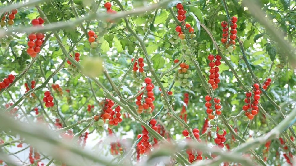 彌渡縣的春沐源櫻桃番茄基地里,七彩番茄掛滿枝頭。每周走貨量約200噸,銷往全國百余城市。通過智慧農(nóng)業(yè)平臺,畝產(chǎn)達22噸,畝產(chǎn)值超55萬元,年銷售額達2.4億元。