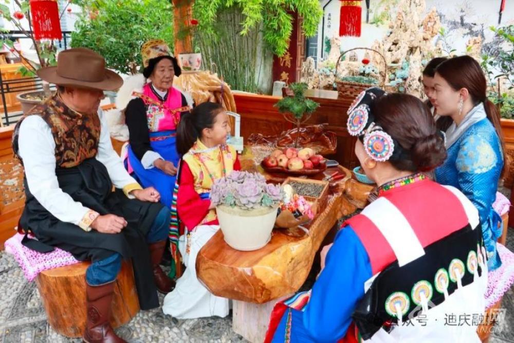 “臘排骨和酥油茶是孩子們最饞的家的味道。”納西族母親和文喜笑著說。在她與藏族丈夫組成的多民族家庭中,孩子從小跟著母親唱納西族的“阿卡巴拉”,跟著父親跳藏族的鍋莊舞。每逢春節(jié),家中既有春聯(lián)燈籠,也有酥油花和青稞穗。這種“一家融多俗”的場景,在金龍社區(qū)中已是常態(tài)。