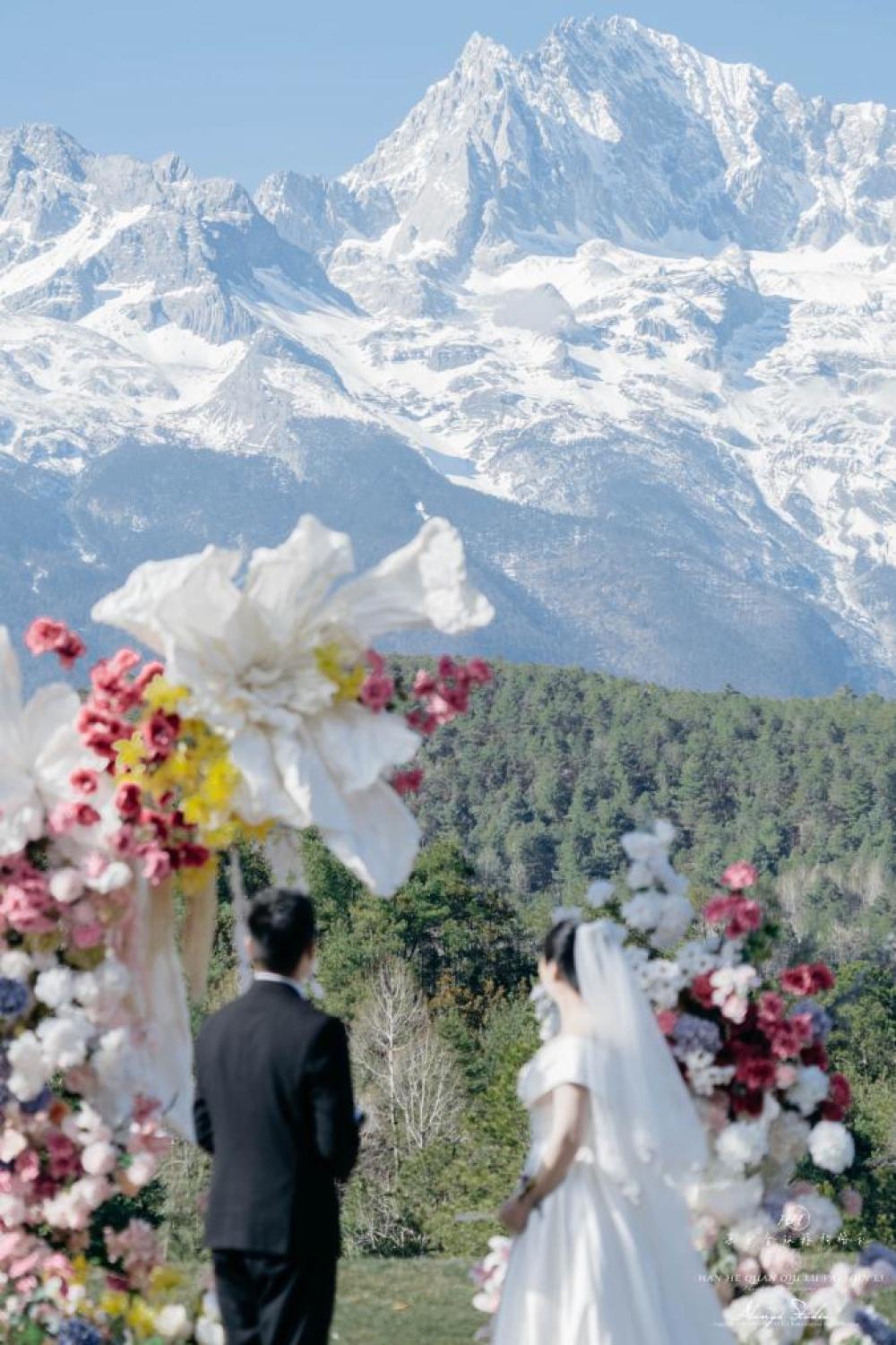 ??與傳統(tǒng)在家鄉(xiāng)舉辦的婚禮不同,目的地婚禮的核心在于“旅行”與“儀式”的結(jié)合,將婚慶典禮和蜜月旅行融為一體,體驗感較強。這類婚禮的地點往往是風(fēng)景如畫或有特殊意義的地方,有著“詩和遠(yuǎn)方”的云南正契合這一特點。