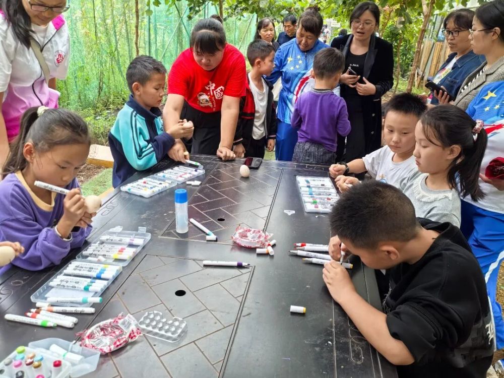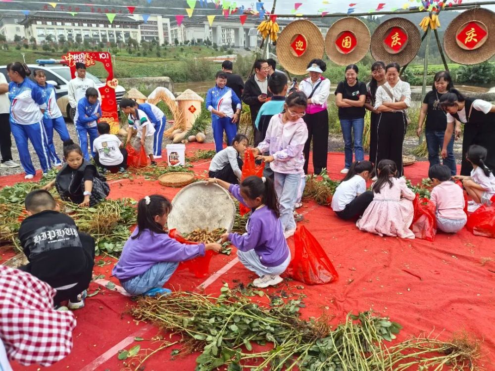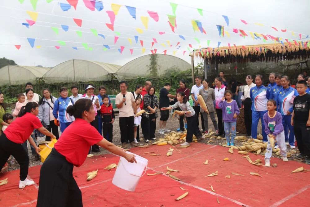 活動在連片金黃稻田中展開,一系列農(nóng)耕體驗項目讓參與者切身感受豐收喜悅。“稻菽千浪”親子收割環(huán)節(jié),家長們彎腰割稻、捆扎,孩子們忙著運輸并加油助威,村民的山歌、稻穗斷裂聲與歡笑聲交織成豐收樂章?!拔骞蓉S登”區(qū)里,剝玉米、編辣椒、摘花生等比賽熱火朝天,田間充滿互助與喜悅。“彩蛋繪豐景”中,孩子們以蛋為紙,繪出稻田與明月的豐收圖景?!邦w粒歸倉”投玉米比賽趣味十足,小朋友瞄準家長籮筐投擲,在協(xié)作中體會糧食來之不易。“瓜王爭霸”賽將氣氛推向高潮,農(nóng)戶展示碩大南瓜、飽滿玉米,評委測量時驚嘆與歡呼此起彼伏?;顒釉趧趧尤の杜c親子溫情中,傳遞出珍惜糧食的深意。