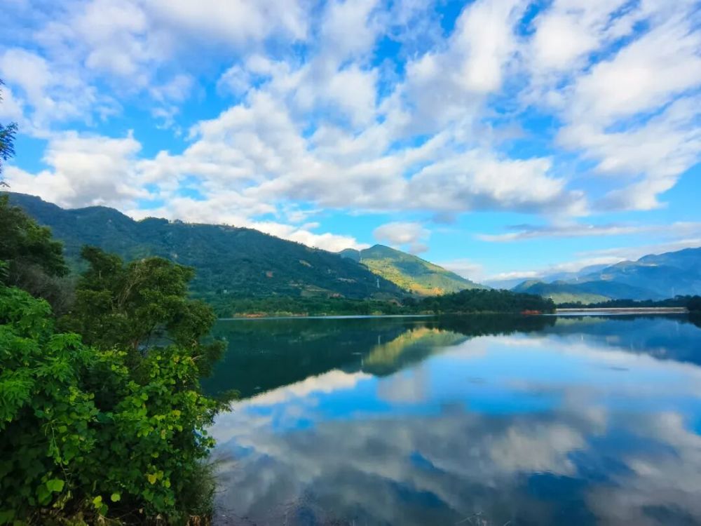 山風(fēng)掠過耳畔,攜來遠(yuǎn)處農(nóng)家樂的淡淡菜香,混著野果的清甜——那是秋日獨有的氣息。此時再看水面,青綠與橙紅交融,分不清是山在水中,還是水在山間。