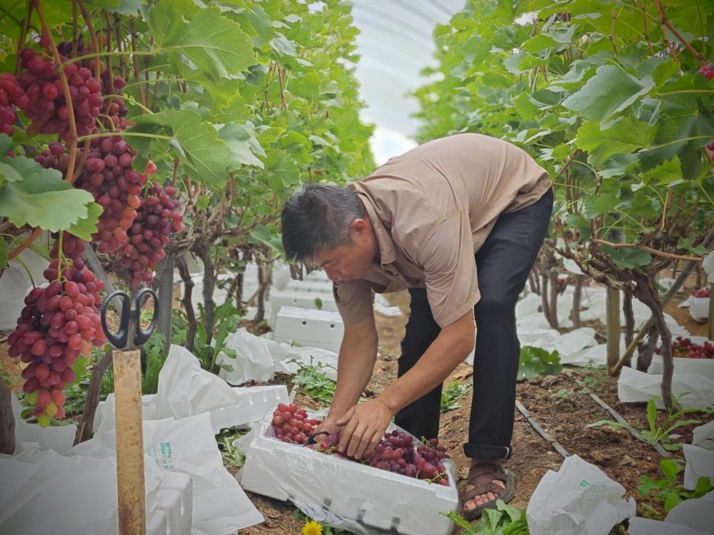 “來(lái)通海收葡萄收了10多年了,農(nóng)戶種出來(lái)的銷路就不用愁了,我們直接來(lái)地里面幫他們采收,通海這邊的葡萄又脆又甜,拉上去昆明還是好賣的,我們拉上去還不出省就銷售完了?!笔召?gòu)商王榮娥說(shuō)。