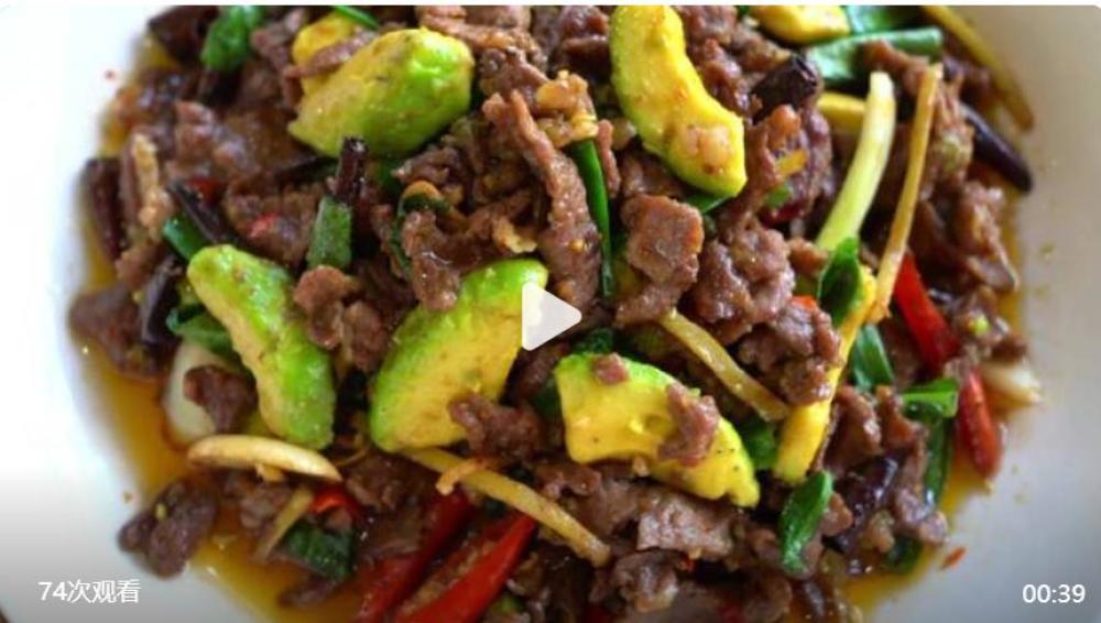 在孟連縣有一道獨(dú)特的菜肴——牛油果炒牛肉。制作時(shí),將七八分熟的本地特產(chǎn)“孟連牛油果”切塊備用。新鮮牛肉切片,用生抽、淀粉等抓勻腌制備用。鍋中倒入適量油燒熱,放入姜、蒜、干辣椒、小米辣炒香。轉(zhuǎn)大火倒入腌制好的牛肉片快速翻炒至變色斷生。接著,加入牛油果塊,翻炒至牛油果變軟。然后放入蔥、緬芫荽。將所有食材翻炒入味后,即可出鍋。牛油果遇上鮮嫩牛肉,味道獨(dú)特,碰撞出意想不到的鮮香。(作者:金占疆 王娟 王彥武)