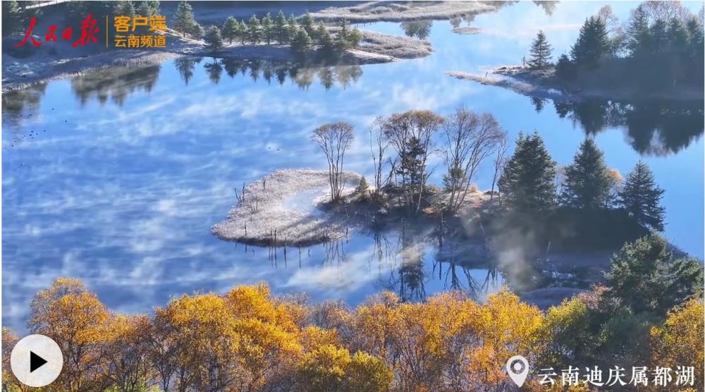 當(dāng)?shù)蠎c屬都湖鋪就銀白地毯,紅黃秋林在湖面投下斑斕倒影;
