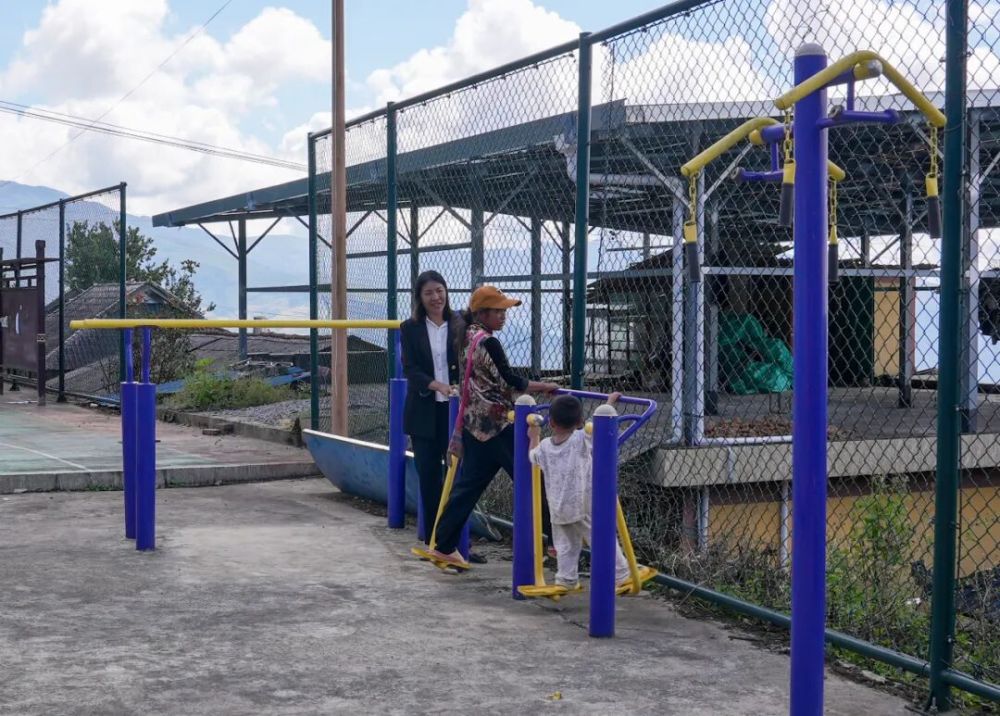 清晨的薄霧還纏在曼亨村的山尖上,娜飛的膠鞋已經(jīng)沾了一圈露水。她踩著沉實(shí)的腳步往曼亨村六組的球場走,遠(yuǎn)遠(yuǎn)就看見村民娜布正帶著小孫子在健身器材上晃悠,銀鈴般的笑聲裹著山風(fēng)飄過來。