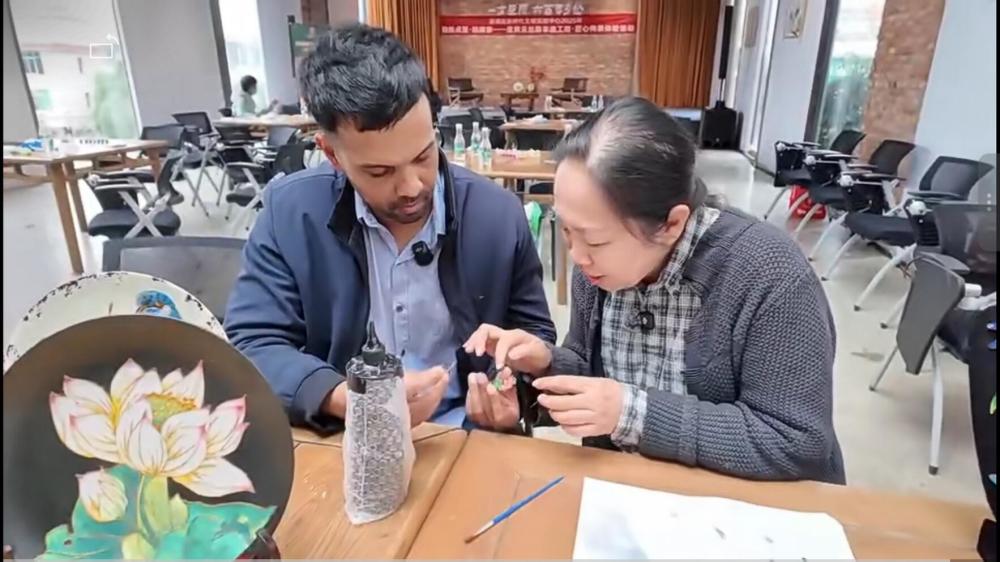 值得一的是,來自斯里蘭卡的網(wǎng)紅阿旺也被掐絲琺瑯的歷史底蘊(yùn)與藝術(shù)魅力深深吸引,成了眾多體驗者的一員。他主動拜師學(xué)習(xí)、感受中國文化并真心點贊,這正體現(xiàn)了傳統(tǒng)工藝跨越國界的非凡感染力。