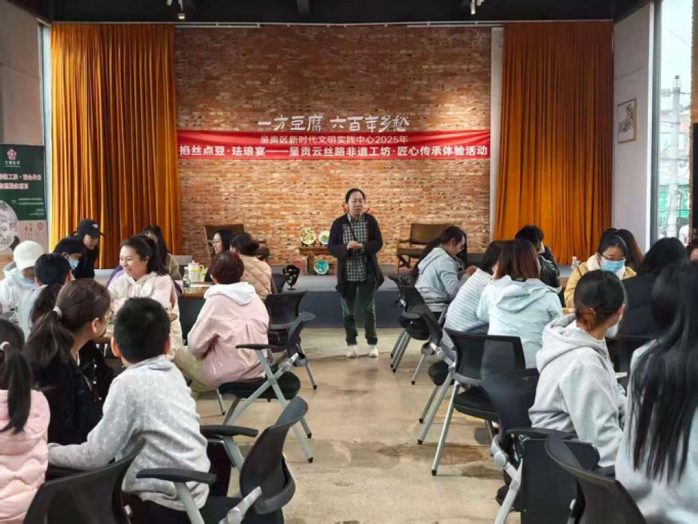 為進(jìn)一步弘揚中華優(yōu)秀傳統(tǒng)文化,豐富居民精神文化生活,在“呈貢區(qū)第六屆七步場豆腐文化旅游節(jié)”到來之際,呈貢-云絲路非遺工坊·匠心傳承志愿服務(wù)項目,11月1日呈貢七步場社區(qū)豆腐博物館開展了“掐絲點豆·琺瑯宴”——掐絲琺瑯胸花創(chuàng)作體驗活動。當(dāng)有著千年歷史的掐絲琺瑯文化遇見七步場600年豆腐,繪就了本屆豆腐文化旅游節(jié)的非遺盛宴。