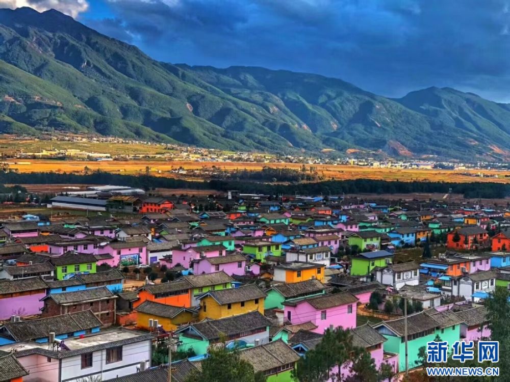 金龍村顏色各異的樓房(資料圖)。新華網(wǎng)發(fā)(麗江市搬遷安置辦公室 供圖)