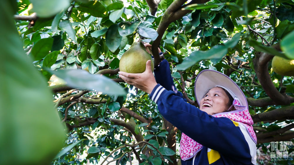 △南福村黃澄澄的柚子掛滿枝頭。(總臺央視記者鄂介甫拍攝)