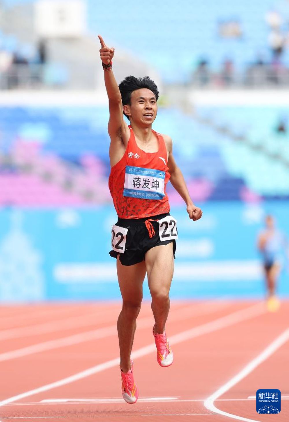 ??11月20日,云南隊(duì)選手蔣發(fā)坤沖過終點(diǎn)后慶祝。最終,他奪得冠軍。