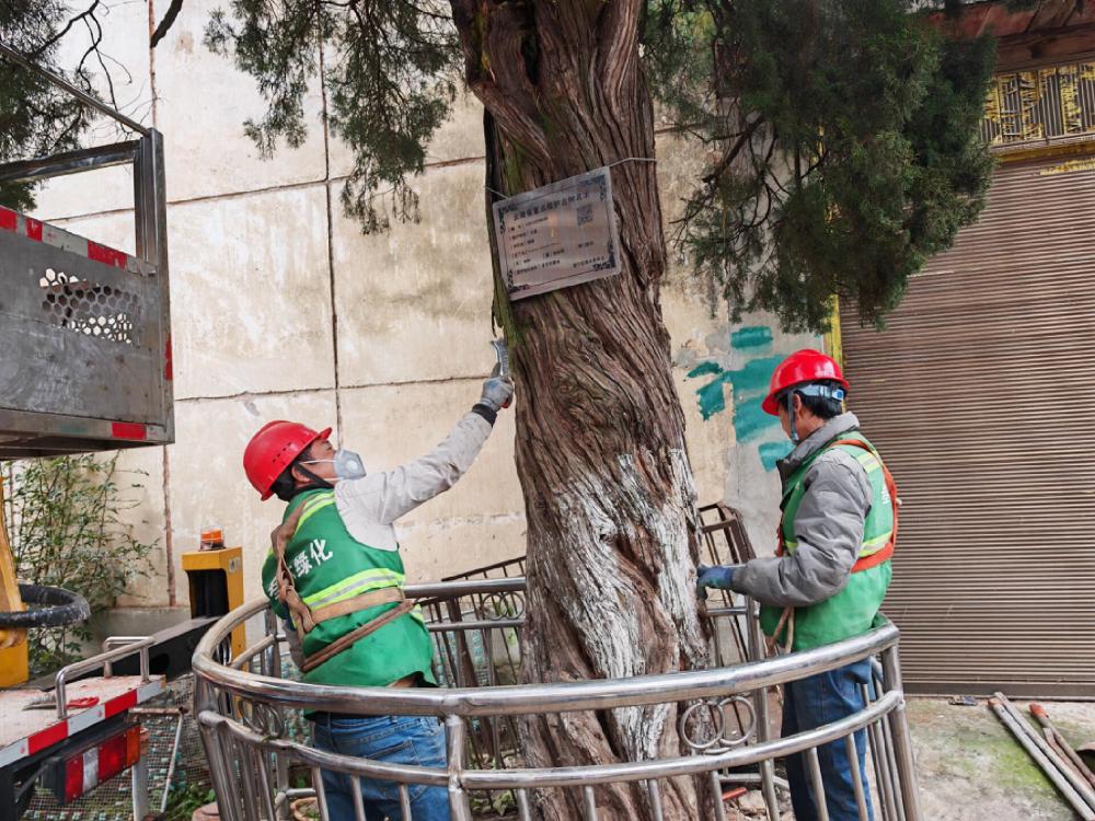 近年來,昆明市林業(yè)和草原局持續(xù)加大古樹名木保護(hù)力度,建立了古樹名木信息管理系統(tǒng),開發(fā)了古樹監(jiān)測系統(tǒng)小程序,對長勢瀕危的一級保護(hù)古樹名木進(jìn)行篩選,開展“一樹一策”搶救復(fù)壯行動。目前,全市5.49萬株古樹名木已全部實施掛牌保護(hù),并對急需救治的古樹名木實施了地上環(huán)境綜合治理、土壤改良、圍欄保護(hù)、樹洞處理、支撐拉索、有害生物防治、截剪枯干、設(shè)立避雷裝置等復(fù)壯工作。此外,通過編制《鄉(xiāng)村古樹名木搶救復(fù)壯技術(shù)規(guī)程》,實施古樹名木搶救復(fù)壯計劃,“一樹一策”對古樹進(jìn)行全身性保護(hù)。