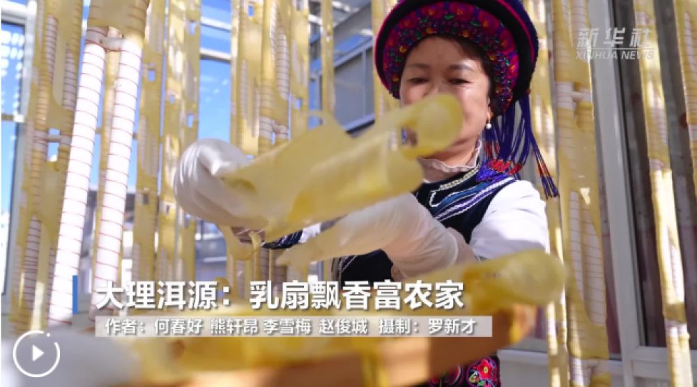 初冬,空氣干爽微寒,正是乳扇制作的好時(shí)節(jié)。乳扇是白族傳統(tǒng)特色美食,它用鮮牛奶和酸漿制成,因形似扇子而得名。在云南省大理白族自治州洱源縣,當(dāng)?shù)厝搜赜冒鬃謇鲜炙囍谱魅樯?,?shí)現(xiàn)非遺保護(hù)與農(nóng)戶增收。