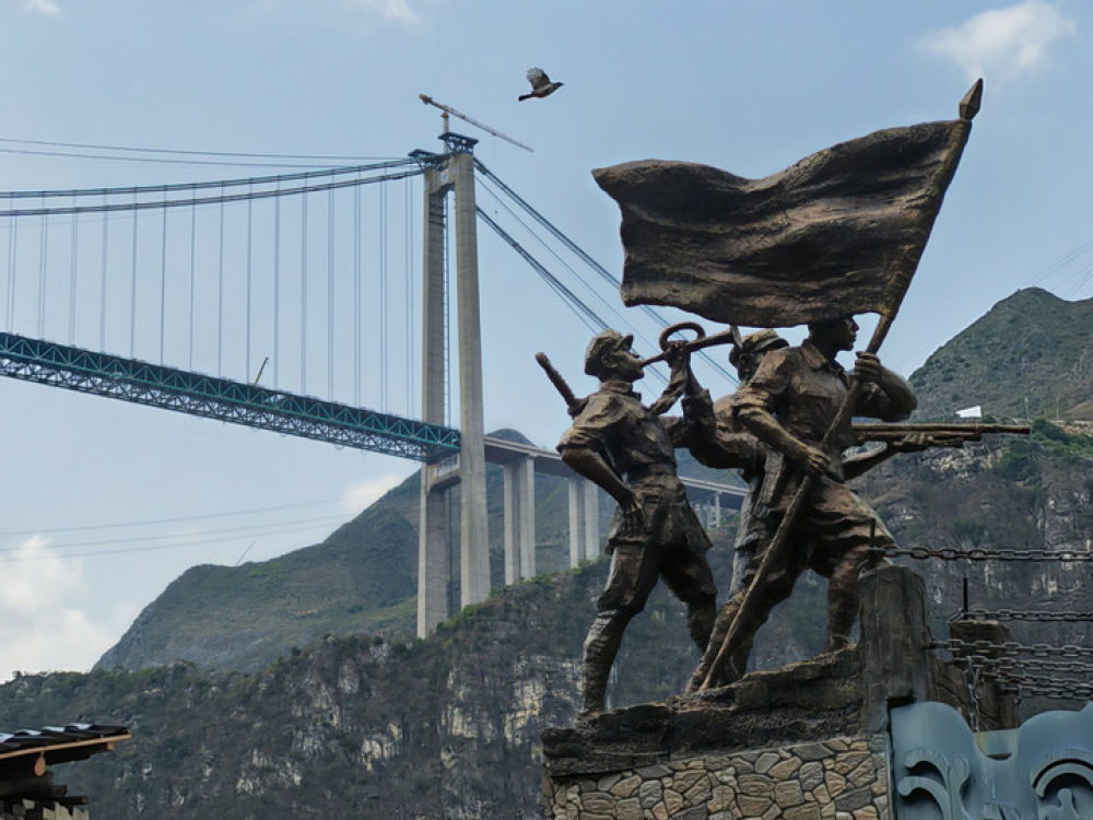 這是2025年4月28日拍攝的貴州花江峽谷大橋。9月28日,新的世界第一高橋——貴州花江峽谷大橋建成通車。近處的則是一座建于1898年、由14根鐵鏈組成的花江鐵索橋。1935年4月,中央紅軍右路縱隊挺進黔西南,死守花江鐵索橋這一戰(zhàn)略要沖,確保紅軍主力順利搶渡北盤江。新舊兩座橋,橫跨著百年歷史風(fēng)云,見證著血與火的艱辛歷程。