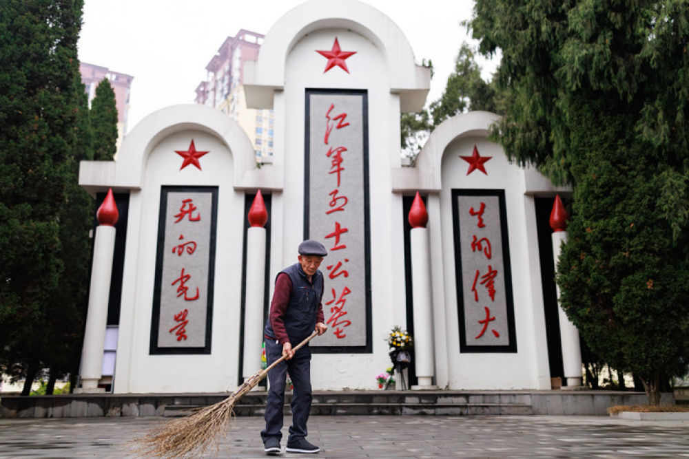位于貴州遵義仁懷市魯班街道的紅軍烈士陵園,長眠著146名紅軍烈士。這是“守陵人”郭德剛老人在清掃陵園(2025年1月8日攝)。1999年,前來陵園參觀的郭德剛在聽了陵園第一代“守陵人”劉福昌長年守護陵園的感人事跡后,很受觸動,也加入到“守陵人”的隊伍中。在兩代“守陵人”的守護下,如今的烈士陵園樹木蔥郁、階梯整潔。