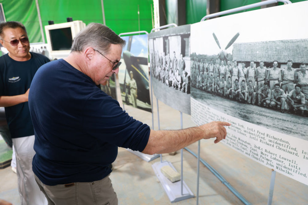 2025年7月16日,美中航空遺產(chǎn)基金會主席杰夫·格林在貴州黃平舊州機場查看飛虎隊資料照片??箲?zhàn)時期,舊州機場主要承擔(dān)飛機加油、彈藥補充和維修任務(wù)。常駐于此的美國飛虎隊?wèi)?zhàn)機頻頻在該機場起降,參加了湘西會戰(zhàn)、衡陽保衛(wèi)戰(zhàn)等著名戰(zhàn)役。該機場見證了中美聯(lián)合反抗法西斯的光輝歷史,還為確?!榜劮搴骄€”的順利暢通發(fā)揮了舉足輕重的作用。