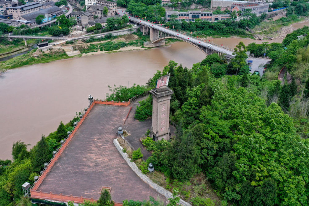 位于赤水河畔的貴州省遵義市習(xí)水縣土城鎮(zhèn),是赤水河中游的重要碼頭,同時也被稱作“躺在紀(jì)念館上的紅色小鎮(zhèn)”。1935年,中央紅軍在土城一渡赤水河,拉開了四渡赤水戰(zhàn)役的序幕。這是2021年4月21日拍攝的土城渡口紀(jì)念碑(無人機照片)。