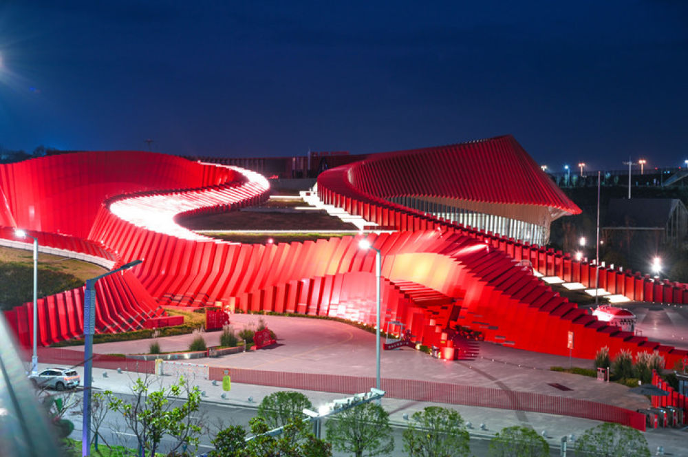 這是2025年11月15日拍攝的貴州長征文化數(shù)字藝術(shù)館——“紅飄帶”夜景。