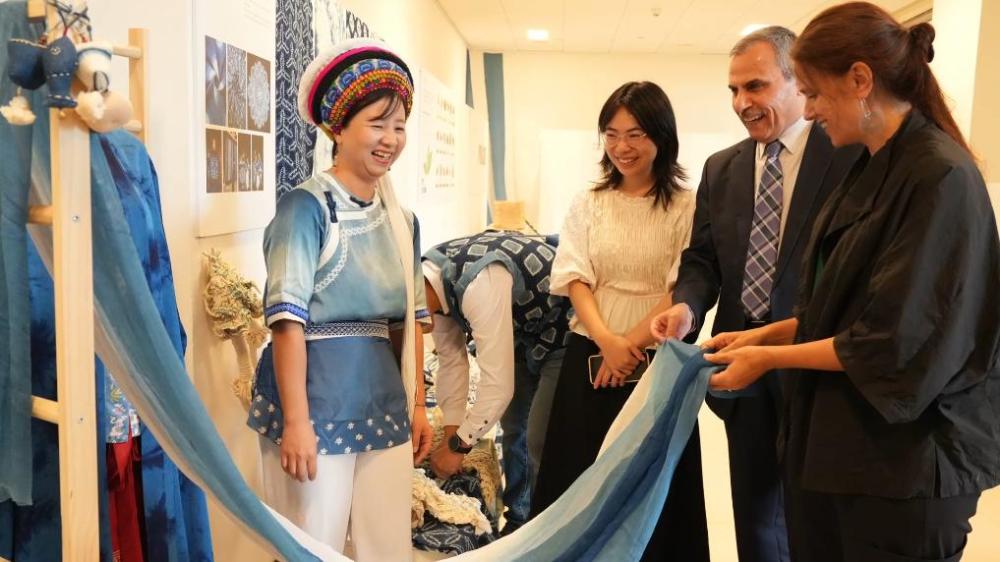 ??張翰敏帶著扎染,一次次跨越山海,從英國、泰國到阿聯(lián)酋、德國、芬蘭,10余場國際藝術(shù)展覽中,都有白族扎染靜謐而有力的表達,讓扎染作品被世界看見。