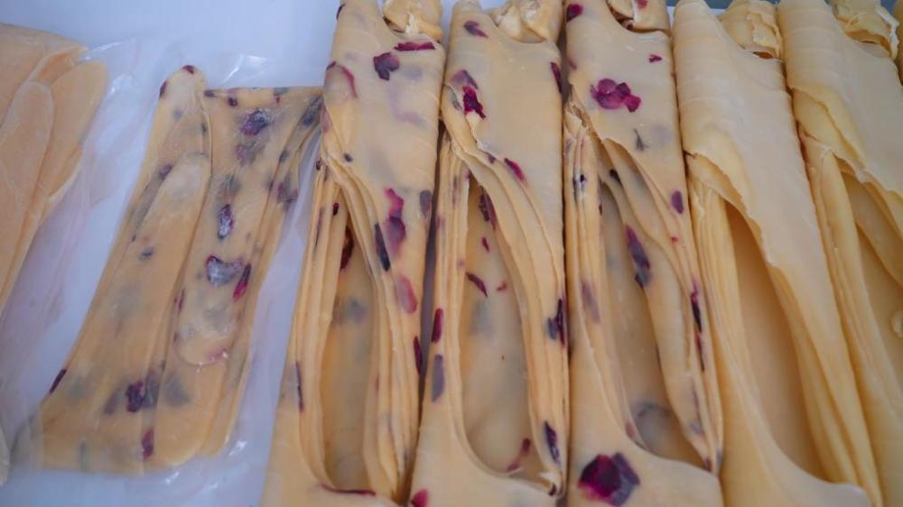 ??乳扇上架后,經(jīng)兩三日晾曬即可食用,可煎、烤、炸、煮,烹調(diào)出多種美味。李沛和守著老手藝,也跟上新發(fā)展,讓乳扇在時間里既留住老味,又長出新生。