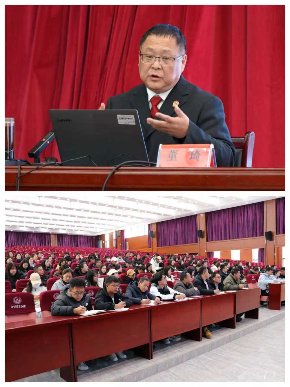 2025年2月25日,麗江市中級(jí)人民法院走進(jìn)麗江市第二中學(xué)開展“開學(xué)第一課”法治教育活動(dòng),院黨組書記、院長董琦為全體教師上了一堂生動(dòng)的法治課。(供圖)