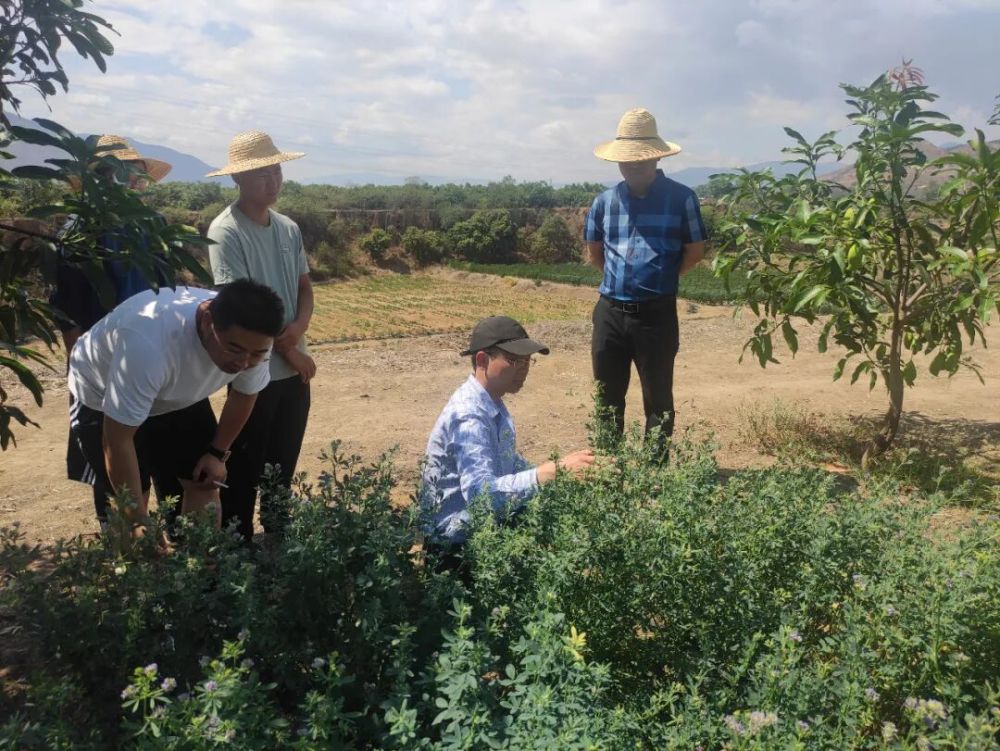 嚴(yán)煒(右二)在指導(dǎo)飼草種植