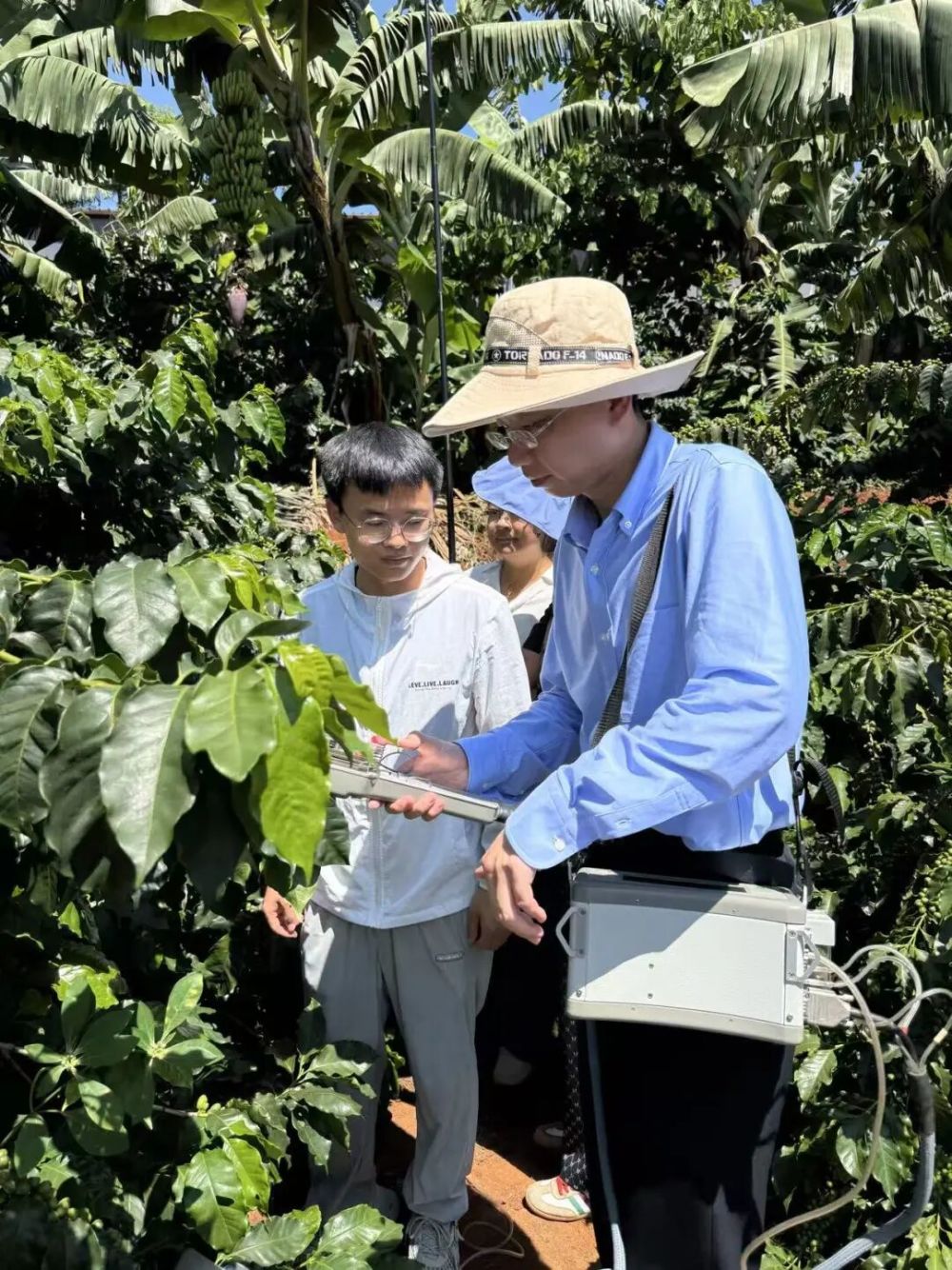 嚴(yán)煒及其團隊成員在隆陽區(qū)的一個有機咖啡種植基地