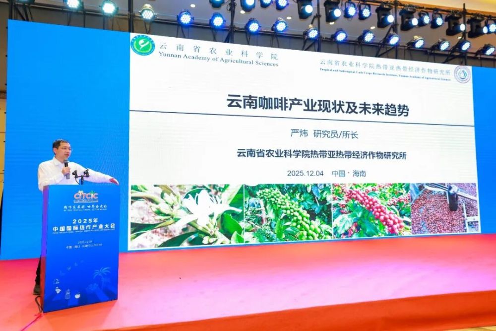 2025年12月4日-5日,中國國際熱作產(chǎn)業(yè)大會在??谡匍_,云南省農(nóng)業(yè)科學(xué)院熱帶亞熱帶經(jīng)濟作物研究所所長嚴(yán)煒在大會咖啡全產(chǎn)業(yè)鏈發(fā)展分論壇上作了題為《云南咖啡發(fā)展現(xiàn)狀與未來趨勢》的專題報告,回顧了云南咖啡百年種植歷程,分析了當(dāng)前產(chǎn)業(yè)發(fā)展現(xiàn)狀與挑戰(zhàn),并展望了未來發(fā)展趨勢。?