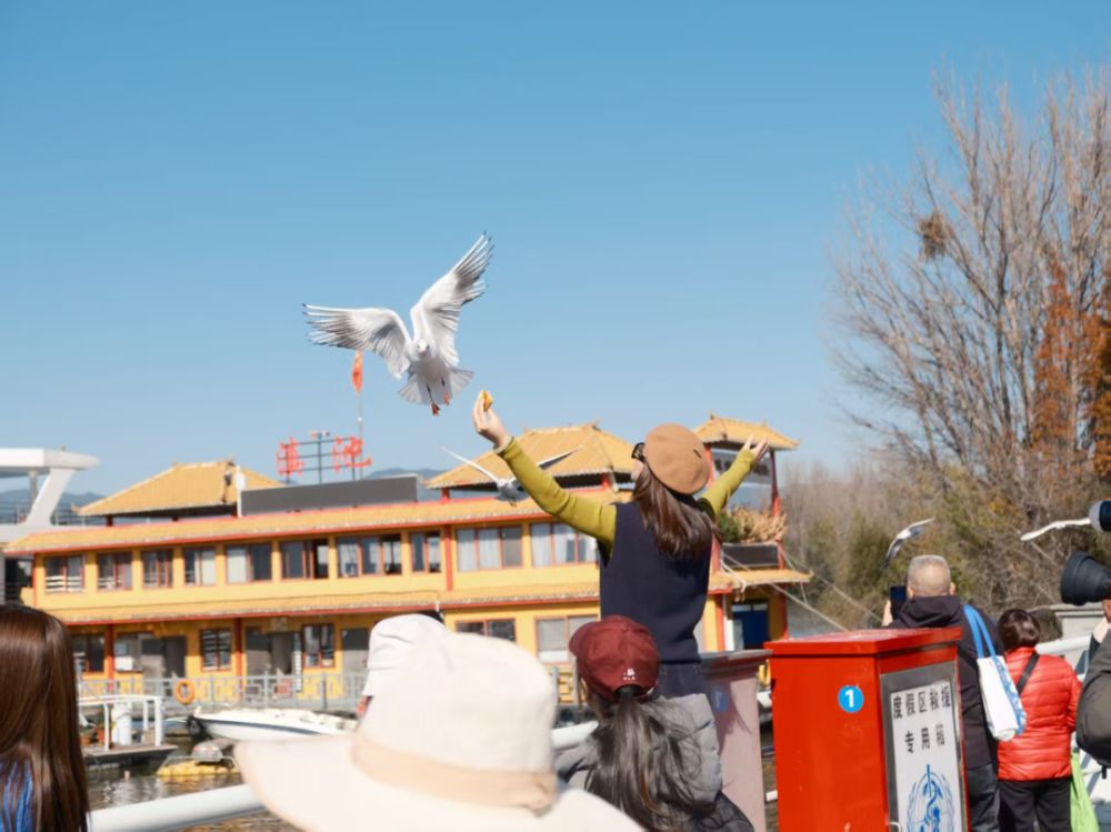 游客在滇池畔與紅嘴鷗互動(dòng) 陳思蒙 攝
