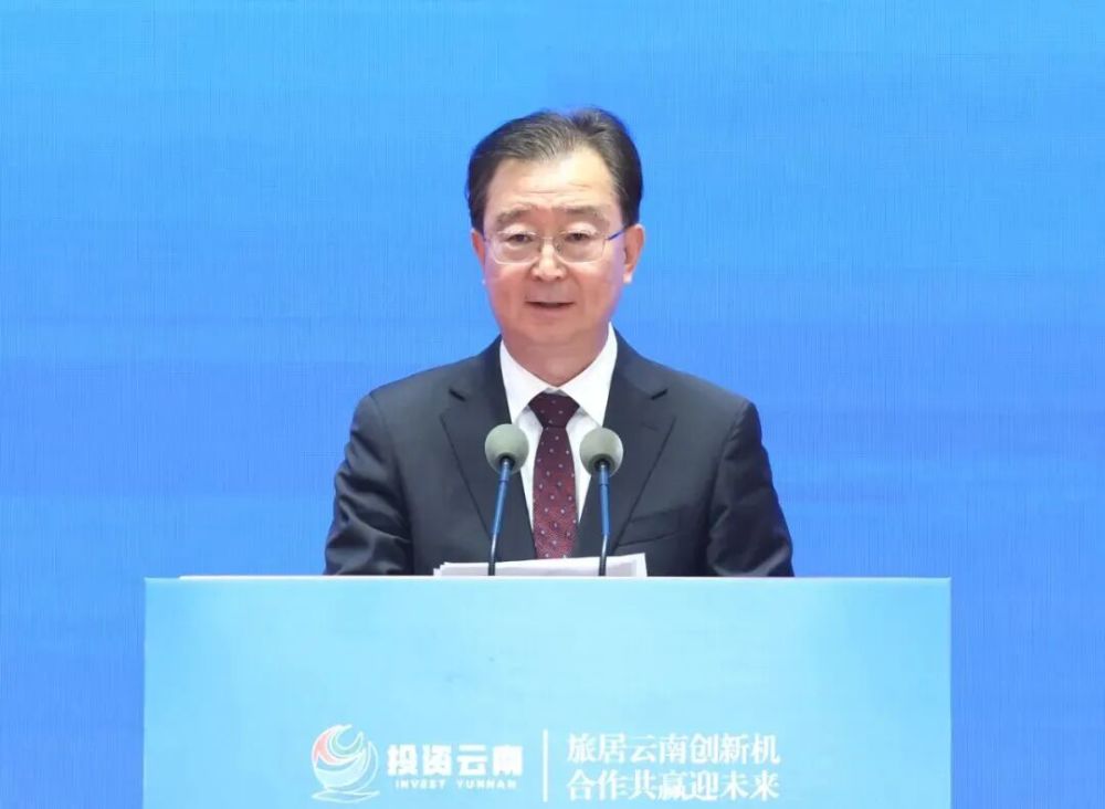 王寧在“旅居云南”政企懇談推進(jìn)會(huì)暨2025年民革黨員企業(yè)家云南行活動(dòng)上致辭