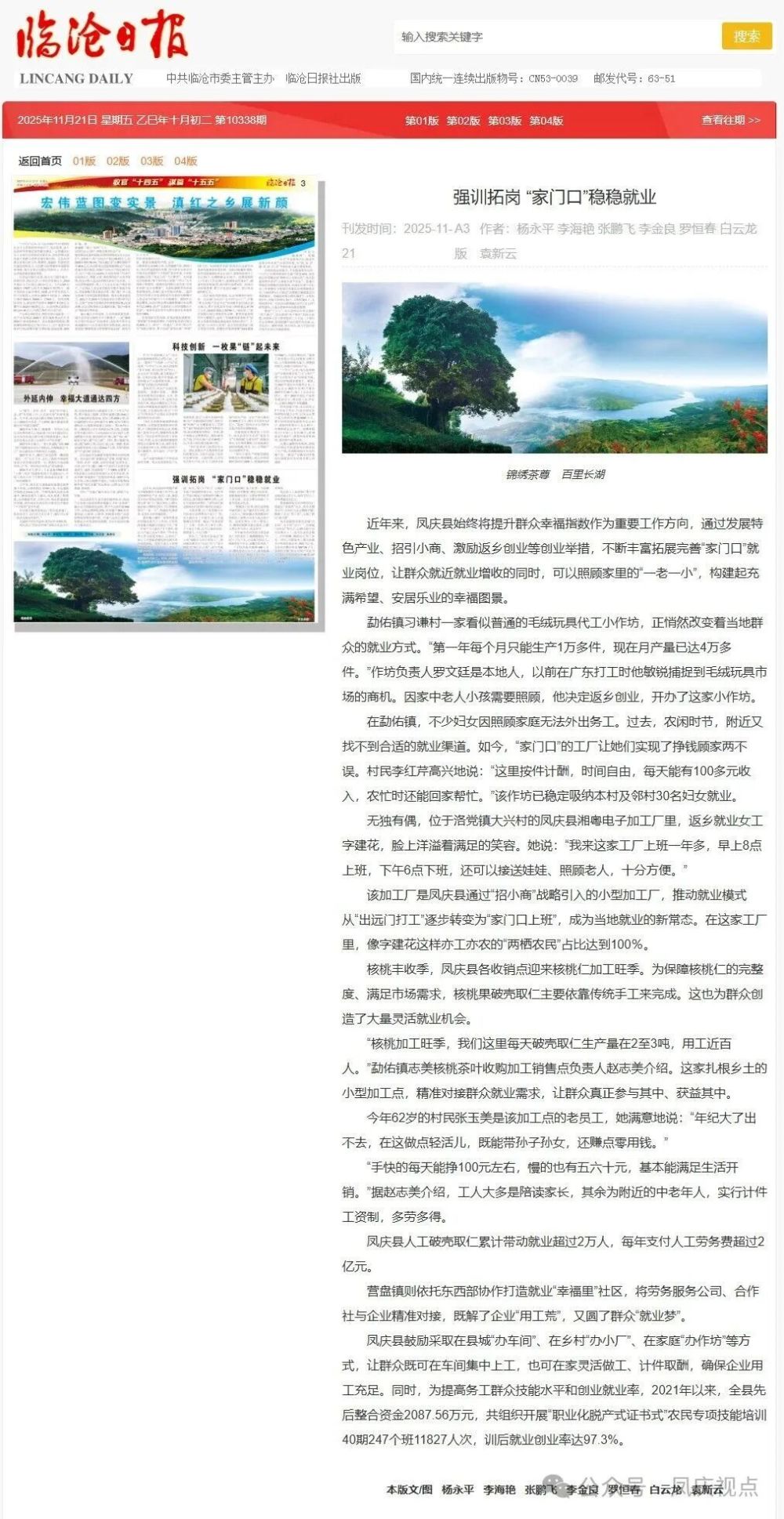11月21日刊發(fā)的《臨滄日?qǐng)?bào)》,連續(xù)推出了鳳慶縣在經(jīng)濟(jì)社會(huì)發(fā)展、產(chǎn)業(yè)科技創(chuàng)新、交通基礎(chǔ)設(shè)施建設(shè)、穩(wěn)就業(yè)等方面的報(bào)道。