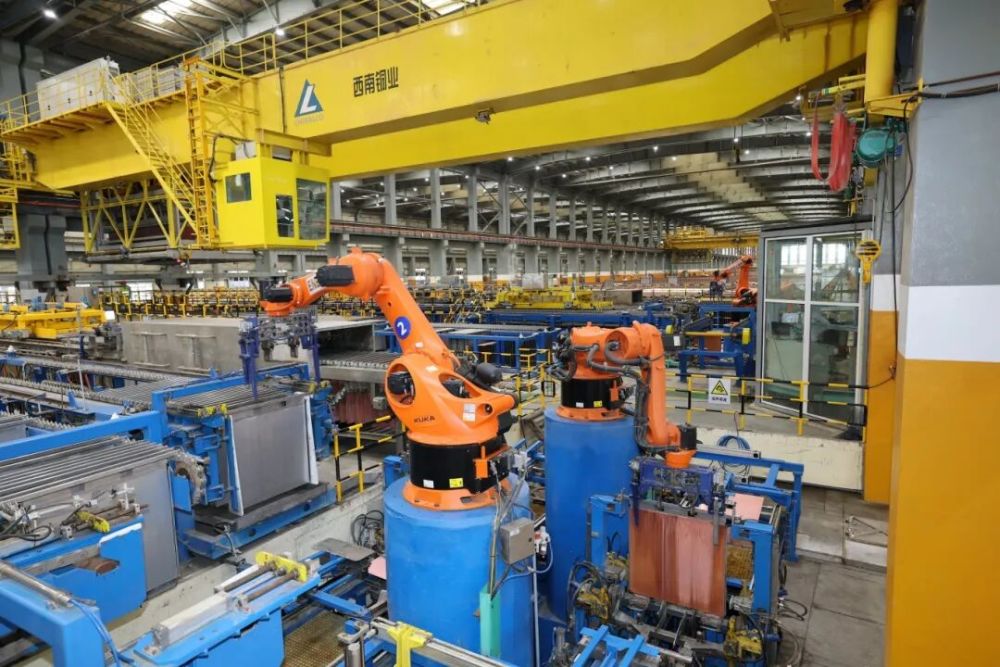 在安寧工業(yè)園區(qū)的西南銅業(yè)生產(chǎn)車間里,機(jī)械手高效精密地忙碌著。李海曦/攝