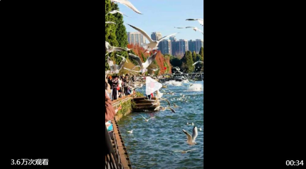 深冬時(shí)節(jié),昆明迎來(lái)最佳觀鷗季。在滇池之畔和昆明城區(qū)的一些河道、公園里,隨處可見(jiàn)成群結(jié)隊(duì)的紅嘴鷗在嬉戲翱翔。據(jù)了解,自1985年首次飛到昆明過(guò)冬以來(lái),每到冬天,紅嘴鷗便會(huì)如約而至,迄今已持續(xù)40年,越冬紅嘴鷗數(shù)量也從一開(kāi)始時(shí)的幾千只擴(kuò)展到現(xiàn)在的4萬(wàn)只左右。