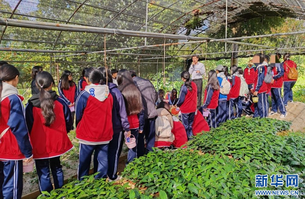 研學(xué)團(tuán)到普洱漫崖咖啡莊園體驗(yàn)學(xué)習(xí)(12月10日攝)。新華網(wǎng)發(fā)(普洱漫崖咖啡實(shí)業(yè)有限公司 供圖)