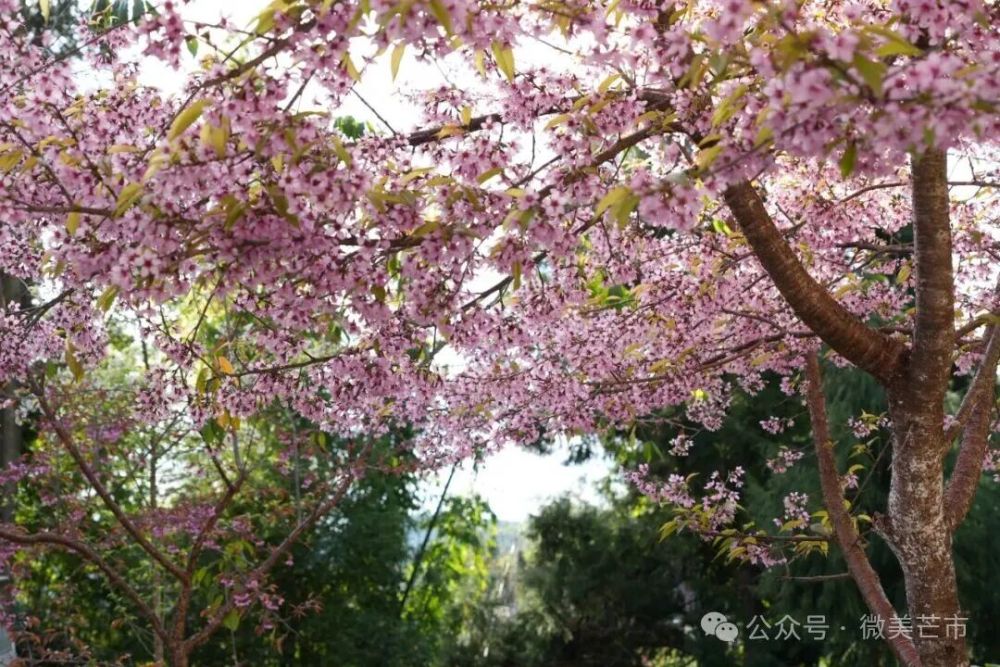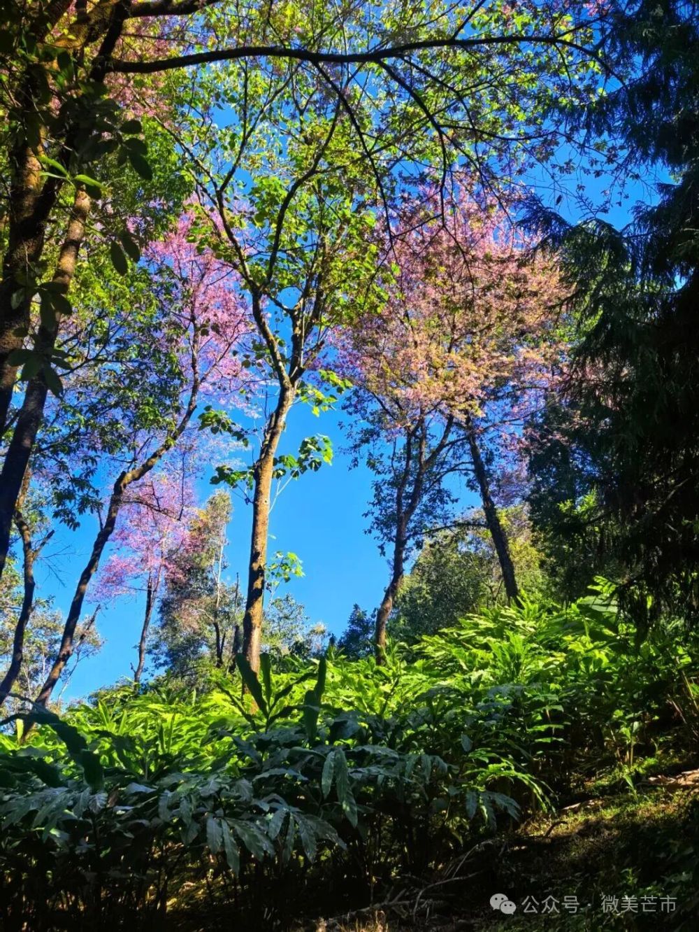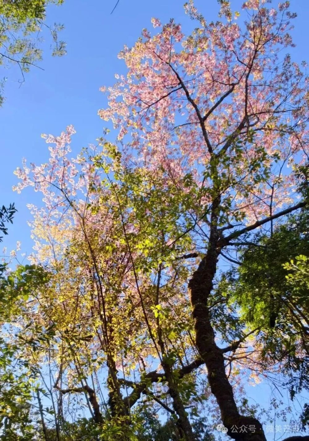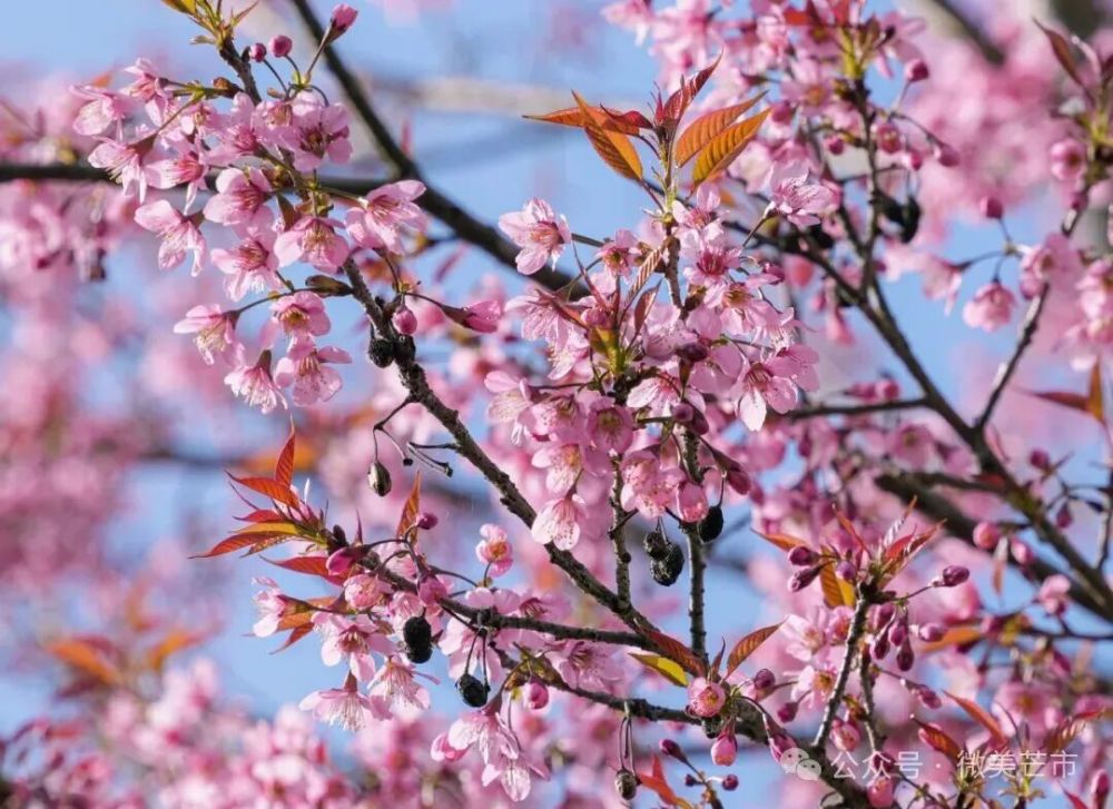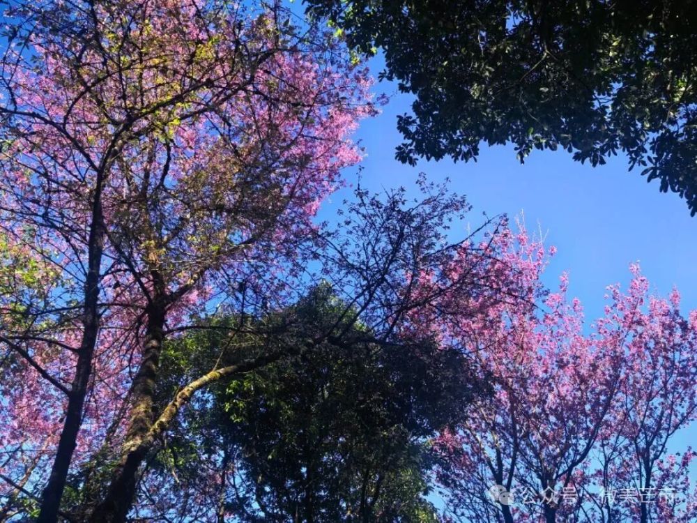 站在樹底抬眼望去,是江東冬日才有的湛藍(lán)天空,澄澈得沒有一絲云絮,將冬櫻的粉襯得愈發(fā)清麗脫俗。腳下松軟的沃土,一簇簇草果樹苗熱烈地生長在冬櫻花疏朗的枝影下。