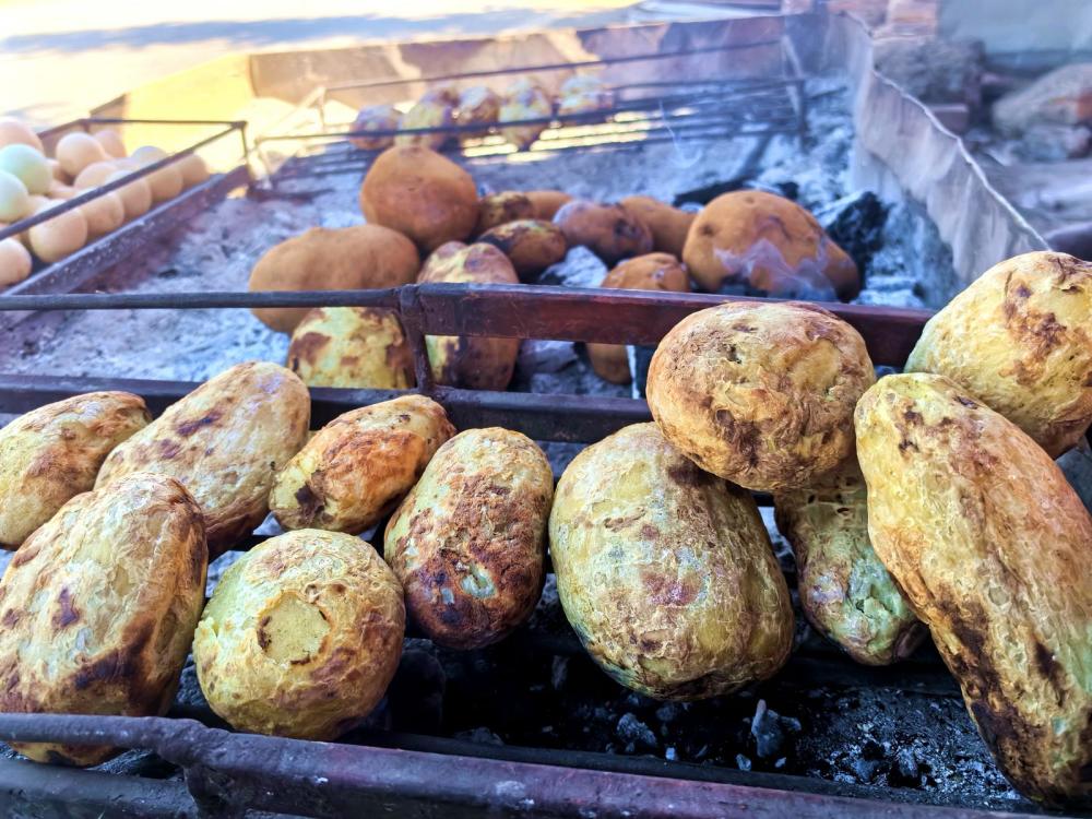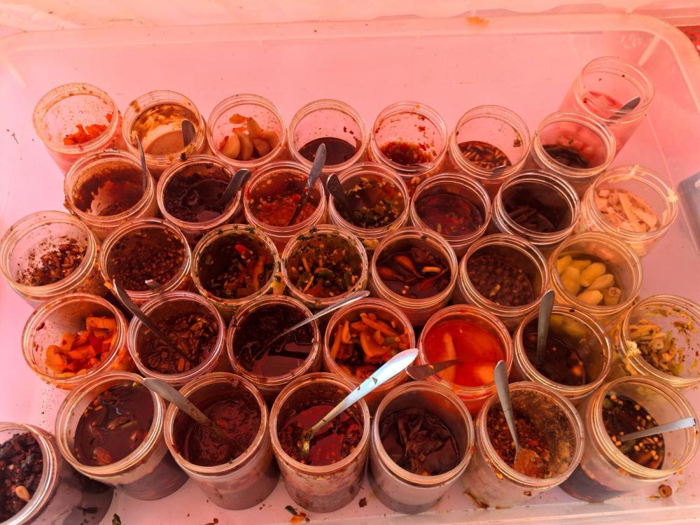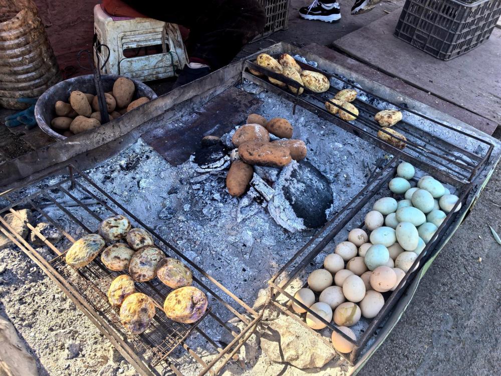 五六個(gè)攤位沿路而設(shè),黃澄澄的洋芋現(xiàn)刮現(xiàn)烤,搭配昭通醬、花生辣椒醬、涼拌折耳根等30余種特色佐料,滿足食客多樣口味。黃心洋芋每市斤五至六元,大山包小黑洋芋每市斤六至七元,價(jià)格親民,攤主還常多送一個(gè)。除燒洋芋外,攤位還供應(yīng)雞蛋、燒玉米。據(jù)攤主介紹,日均收入約兩三百元,煙火氣中透著樸實(shí)生意人的滿足與熱情。