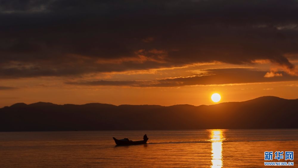 撫仙湖日出美景(12月23日攝)。新華網(wǎng)發(fā)(謝羅凱 攝)