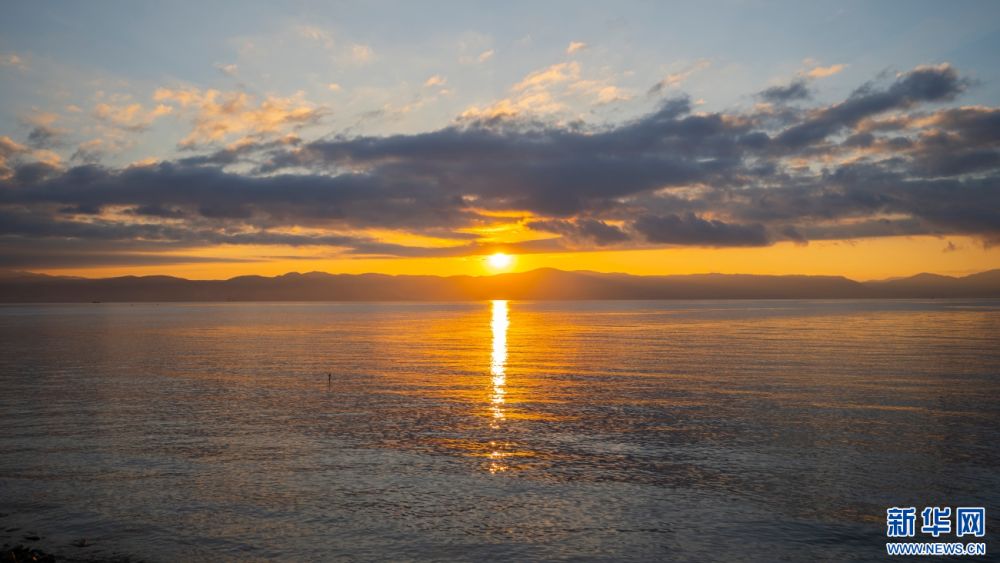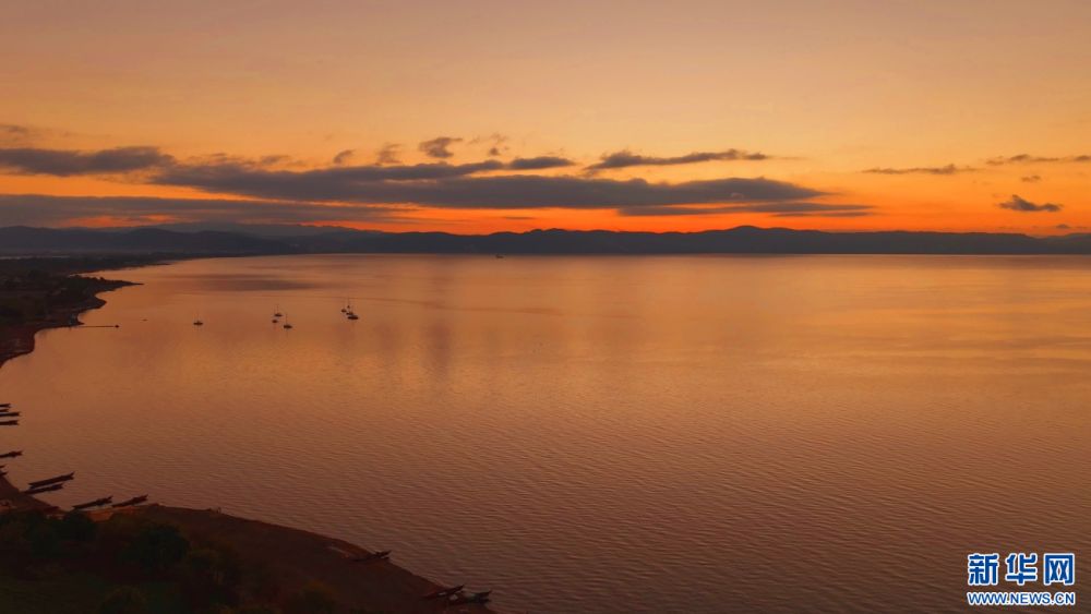 撫仙湖日落美景(12月23日攝)。新華網(wǎng)發(fā)(謝羅凱 攝)