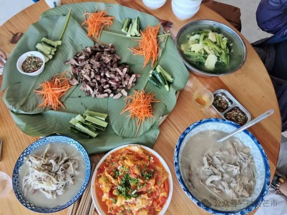 徒步中途,林間休息點備有當?shù)卮迕窬呐胫频霓r(nóng)家飯,山野原生食材搭配古樸做法,一口嘗盡冬日山野的淳樸滋味。