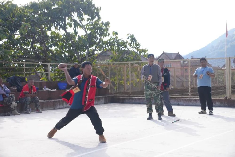來自中課鎮(zhèn)的年輕選手巖暖甩動長繩,陀螺應聲騰起,又穩(wěn)穩(wěn)扎入地面,迅疾的旋轉(zhuǎn)引來四周陣陣喝彩。“這可不只是游戲,”他擦去額角的汗珠,笑著說道,“以前我們過年,就愛以陀螺會友。旋轉(zhuǎn)的陀螺就像年輪,轉(zhuǎn)出一年的好彩頭?!边@場友誼賽并無嚴苛的勝負之分,唯有繩影飛揚間的默契呼應,和那份隨著陀螺一同轉(zhuǎn)動的歡騰與熱情。