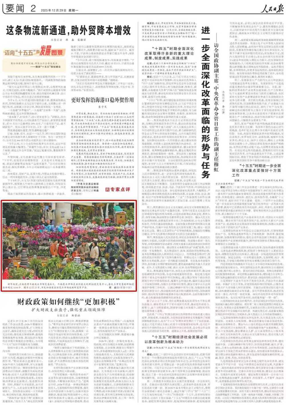 12月29日,《人民日報》要聞版圖片報道新年臨近,云南昆明斗南花卉市場交易紅火。以下為報道詳情: